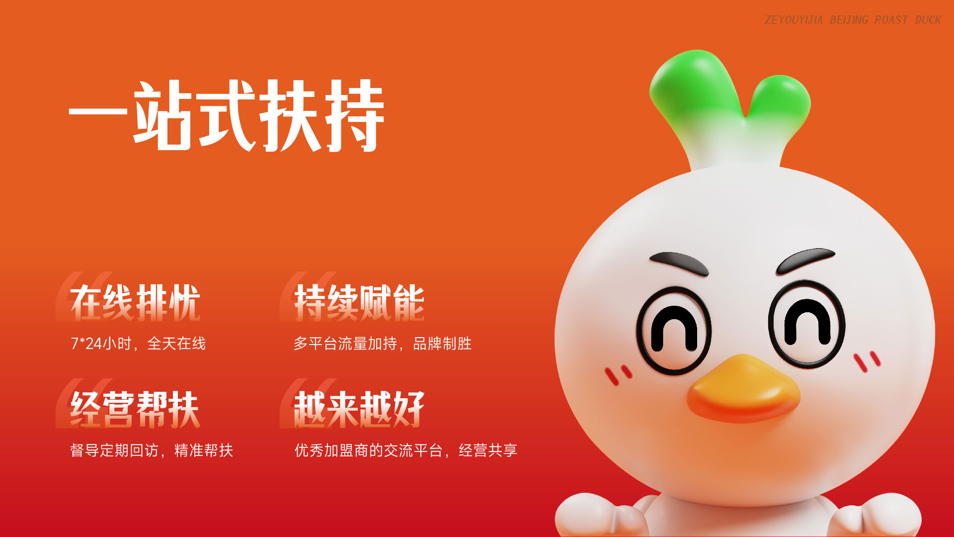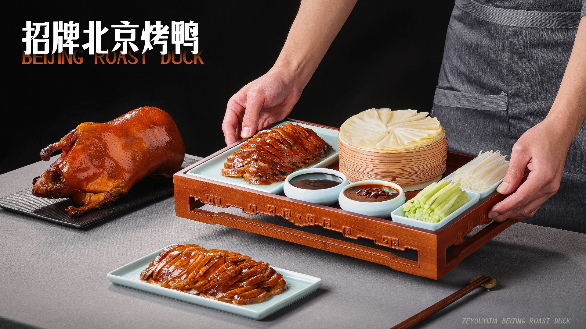 鲜 正点出炉,现烤现片吃鸭,吃最热乎的鸭。 烤 240°C焖炉现烤,原汁原味皮脆肉嫩,飘香四溢。 片 厚薄相间,皮脆肉能之间也能寻找平衡。 料 味通南北,多元选择满足味蕾的充实享受。 意 立店十年,从业十余载纯纯,只为一道菜。